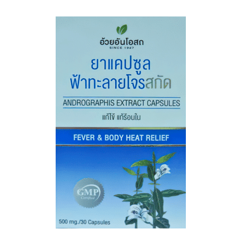 – 1 แคปซูล มีสารสกัดฟ้าทะลายโจรซึ่งมีแอนโดรกราโฟไลด์ไม่ต่ำกว่า 10 มก.