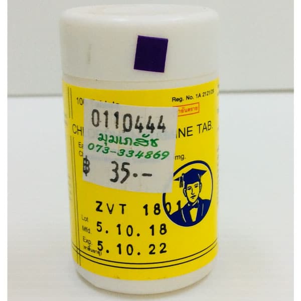 – ส่วนประกอบสำคัญ : 1 เม็ดมีตัวยาคลอเฟนิรามีน 4 มก.