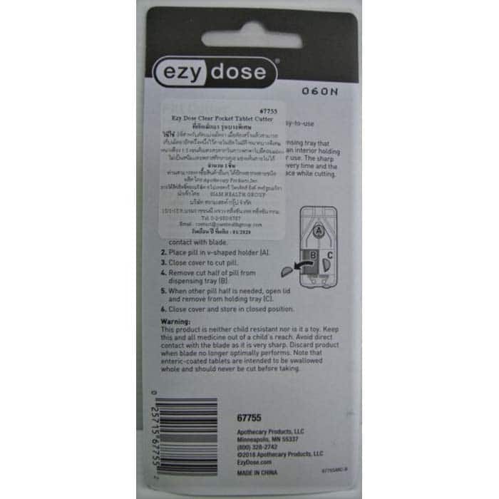 – เม็ดยาเมื่อตัดแบ่งครึ่งแล้ว ครึ่งหนึ่งจะอยู่ในช่องสำหรับนำยาออกมารับประทานได้เลย อีกครึ่งหนึ่งที่เหลือจะเก็บไว้ในช่องเก็บยาที่ปิดสนิท