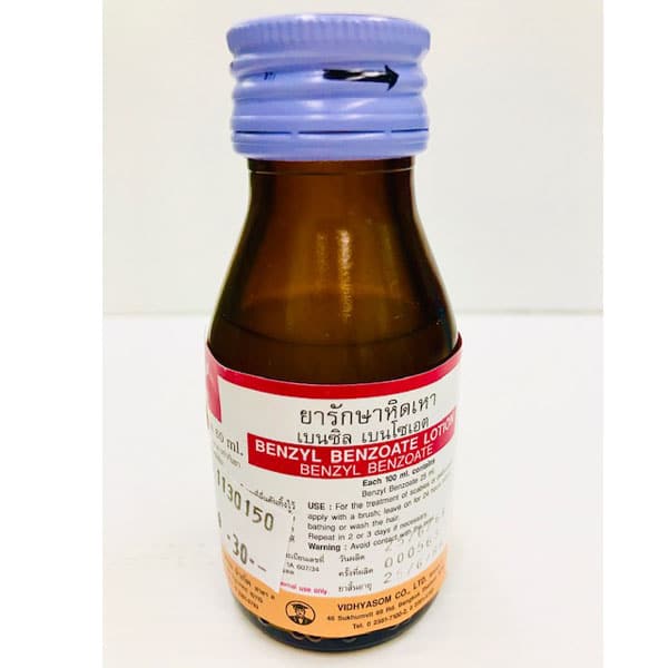 ส่วนประกอบสำคัญ : ในตัวยา 100 มล. ประกอบด้วย เบนซิล เบนโซเอต 25 มิลลิลิตร