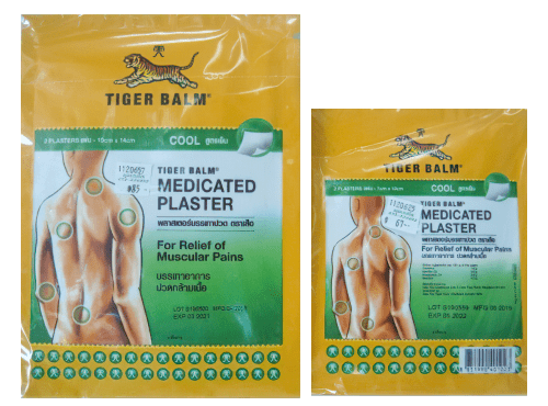 – พลาสเตอร์ บรรเทาปวดตราเสือ สูตรเย็น มีสองขนาด ดังนี้