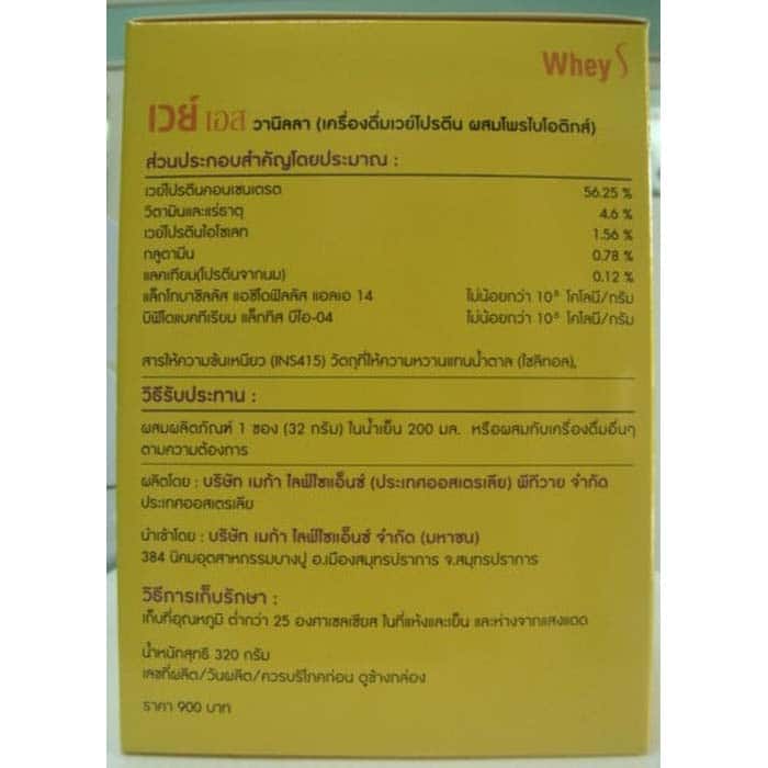 เวย์เอส กลิ่นวานิลลา(เวย์โปรตีน ผสมโพรไบโอติกส์)